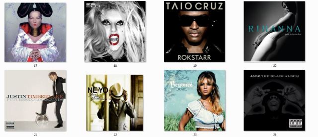 So there is the new list. 6 songs have been replaced, from the likes of Calvin Harris and the Sugababes, Jay-Z’s The Black Album replacing his Blueprint 3 in the list. The most obvious change is that we have a new number 1, My Beautiful Dark Twisted Fantasy is undoubtedly Kanye’s best album, so it had to beat out 808s. 3 other albums from 2010 make an appearance, Robyn’s Body Talk, The-Dream’s Love King and Sleigh Bells’ Treats, which has continued to be one of my most played records. They also mark the second ‘group’ to make it onto the list, them and Girls Aloud being the only acts to make it.